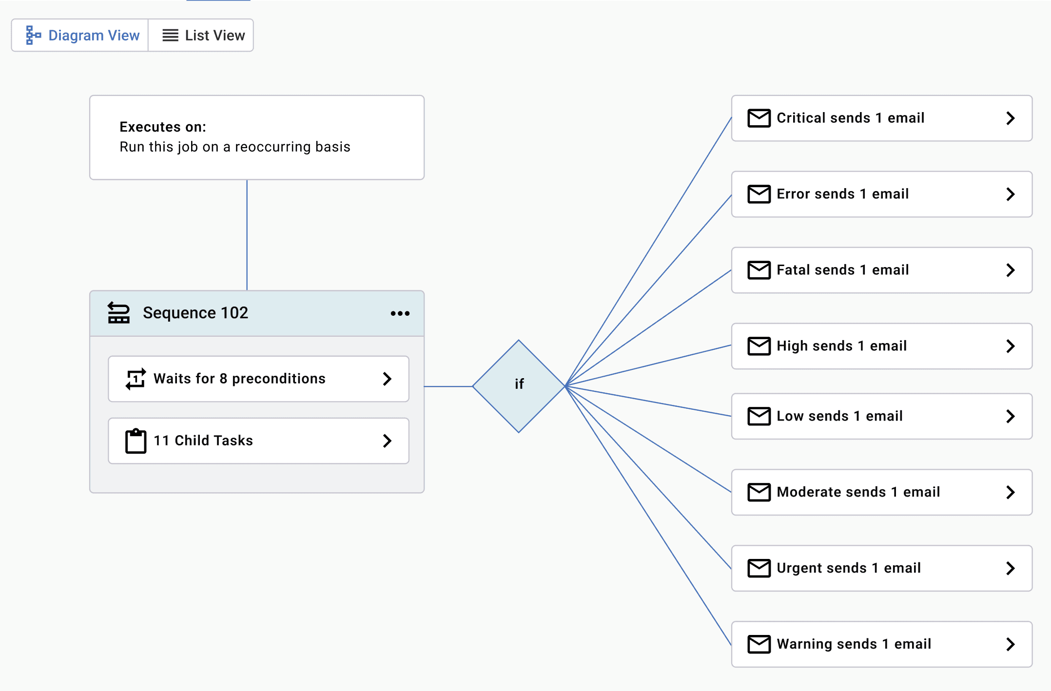 Complex job logic is difficult to reason about in text alone. We refined the visual structure and hierarchy of the Sequence and Diagram views to make relationships, conditions, and execution paths easier to understand. The updates preserve existing mental models while improving clarity and readability.