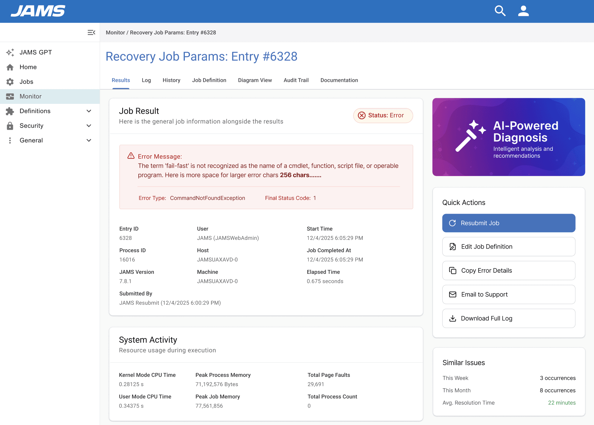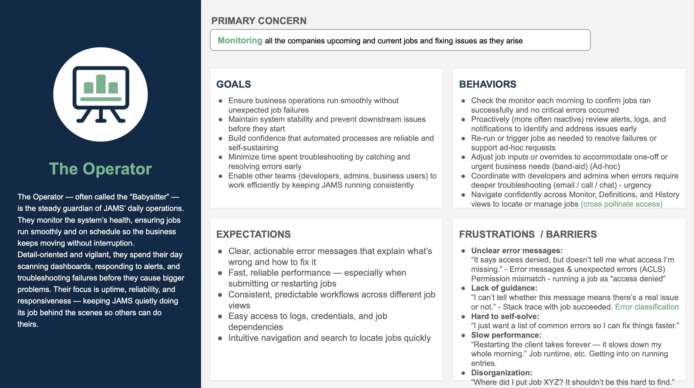Create a cohesive experience where JAMS feels like one system, not a collection of tools. Users should be able to understand system health at a glance, move confidently between tasks, and troubleshoot issues without relying on memory or support.