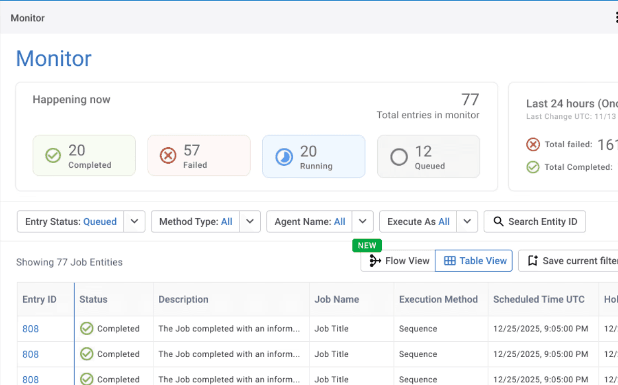 The Monitor experience was redesigned to prioritize system awareness at first glance. Key job states, recent failures, and runtime trends are surfaced immediately, allowing users to understand what’s happening now without scanning dense tables. The goal was to shift monitoring from passive observation to fast, confident action.