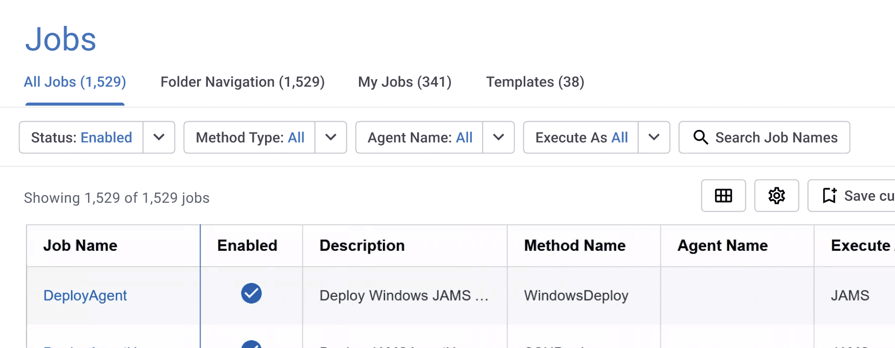 As job libraries scale, discoverability becomes a major pain point. The Jobs Landing experience was redesigned to better support scanning, filtering, and targeted search, making it easier to locate relevant jobs by status, type, or intent. This enables faster navigation and reduces friction in day-to-day job management.
