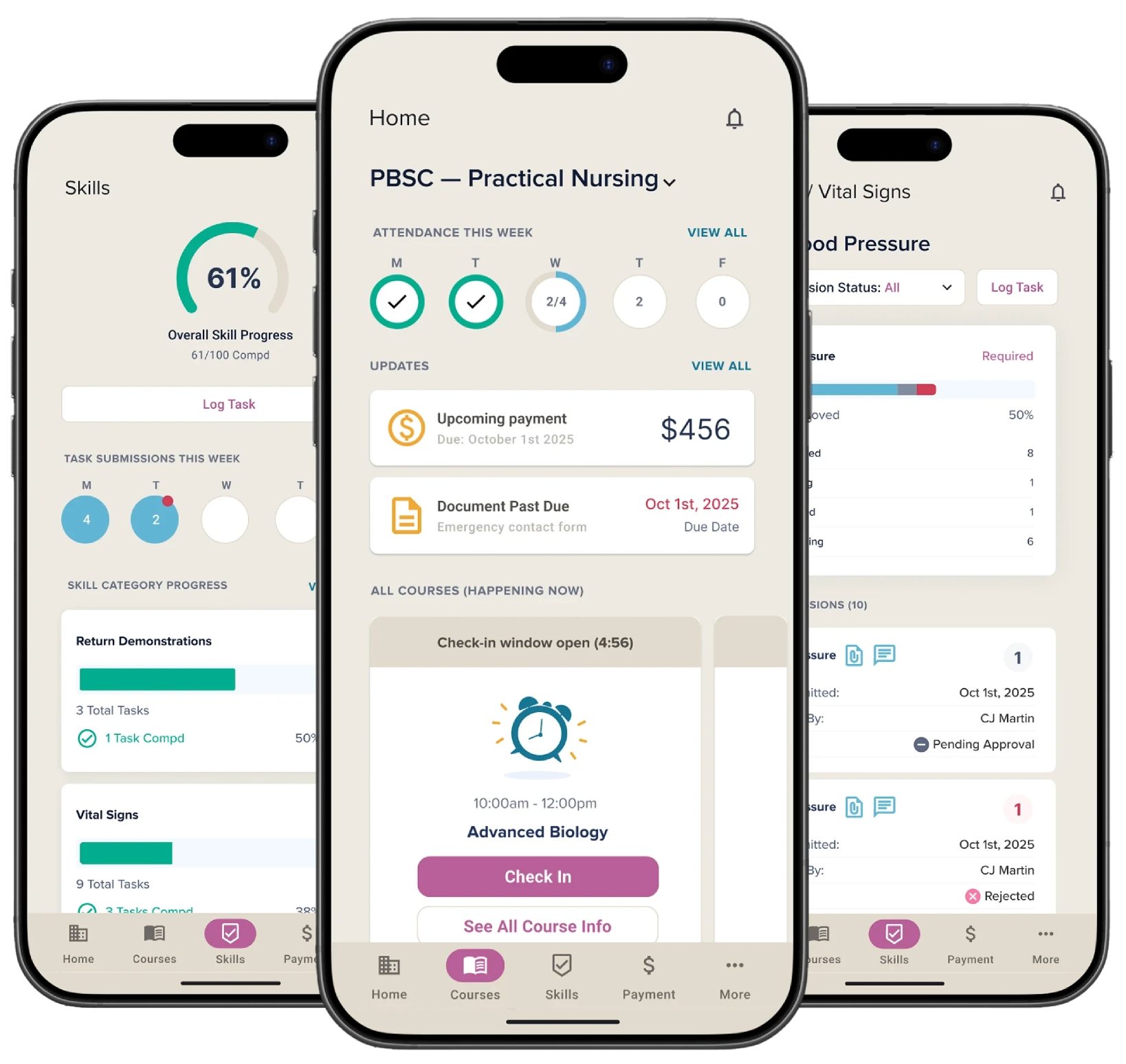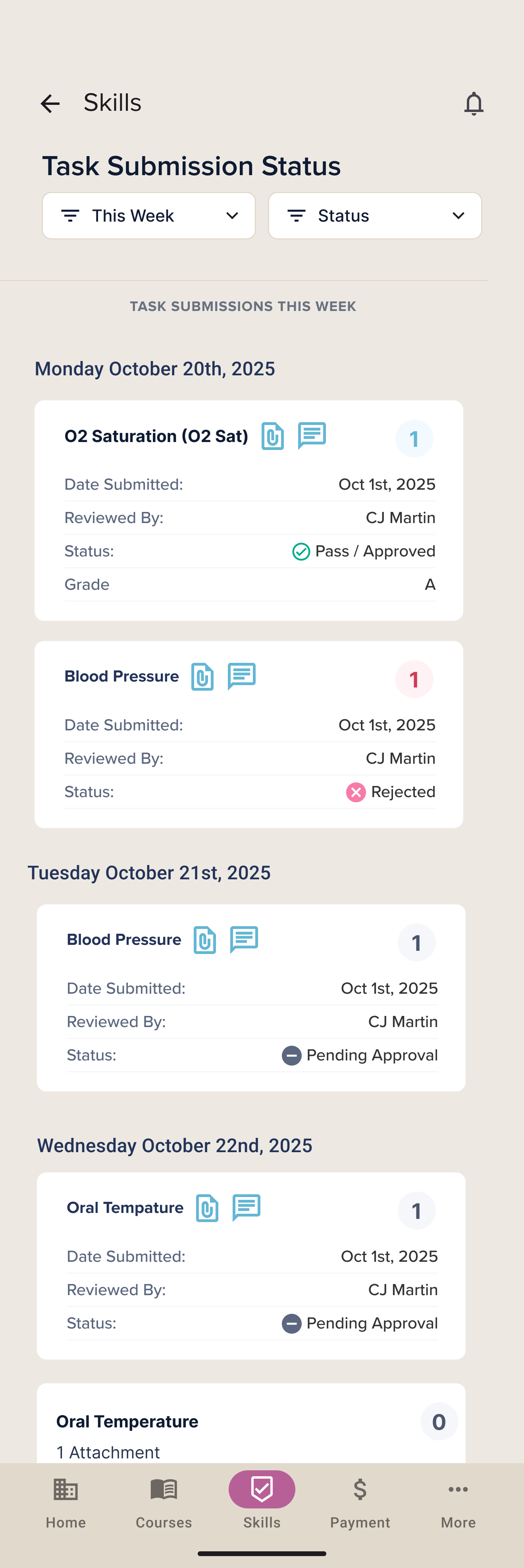 Skill submissions, review statuses, and instructor feedback brought into the core app — addressing the complete absence of skill logging in the existing mobile experience.